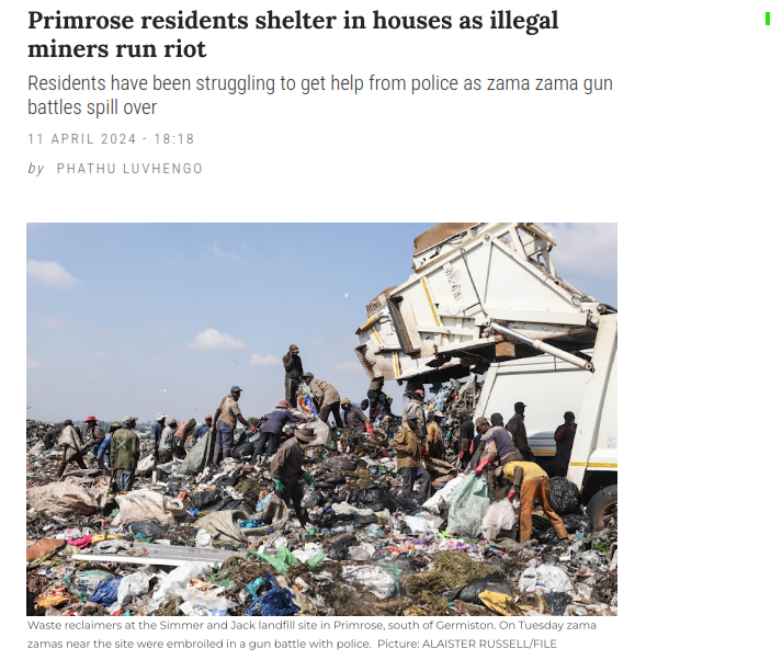 GERMISTON - Illegal miners are terrorising residents of Primrose in Germiston.